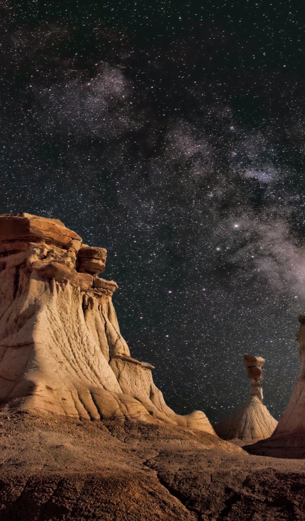 Обои: млечный путь, скалы - 600x1024