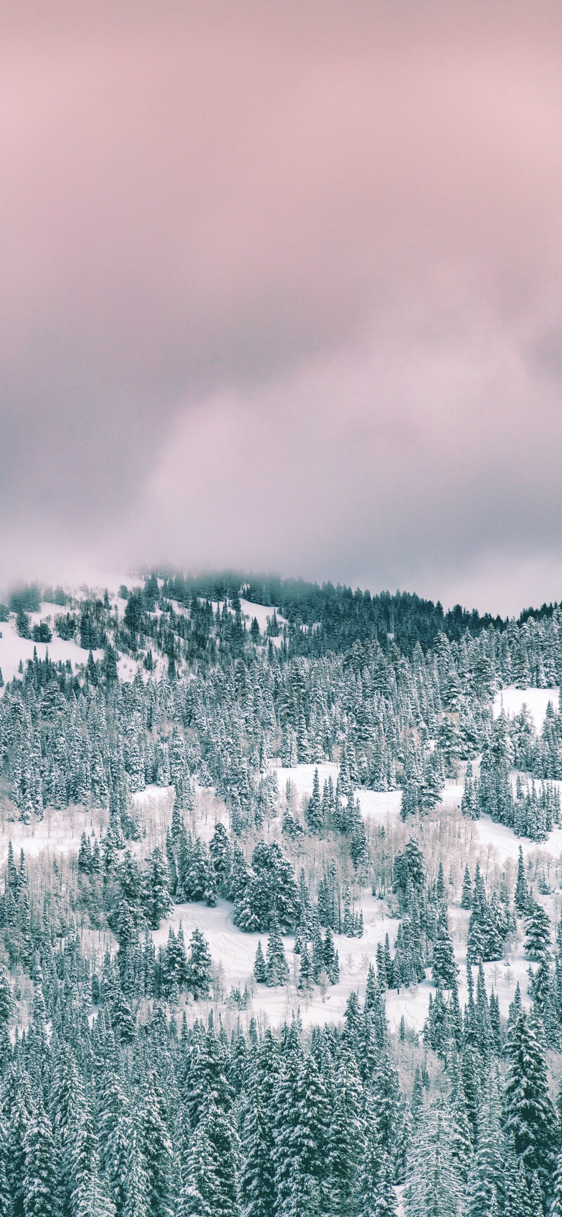 Обои: облака, зимний лес - 1125x2436