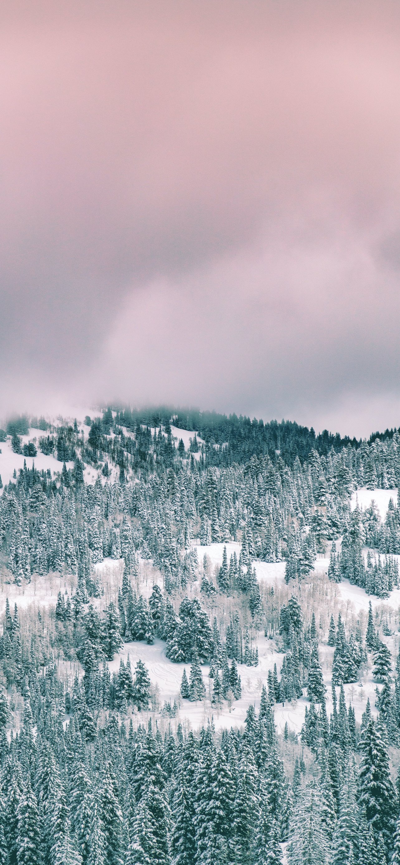 Обои: облака, зимний лес - 1284x2778