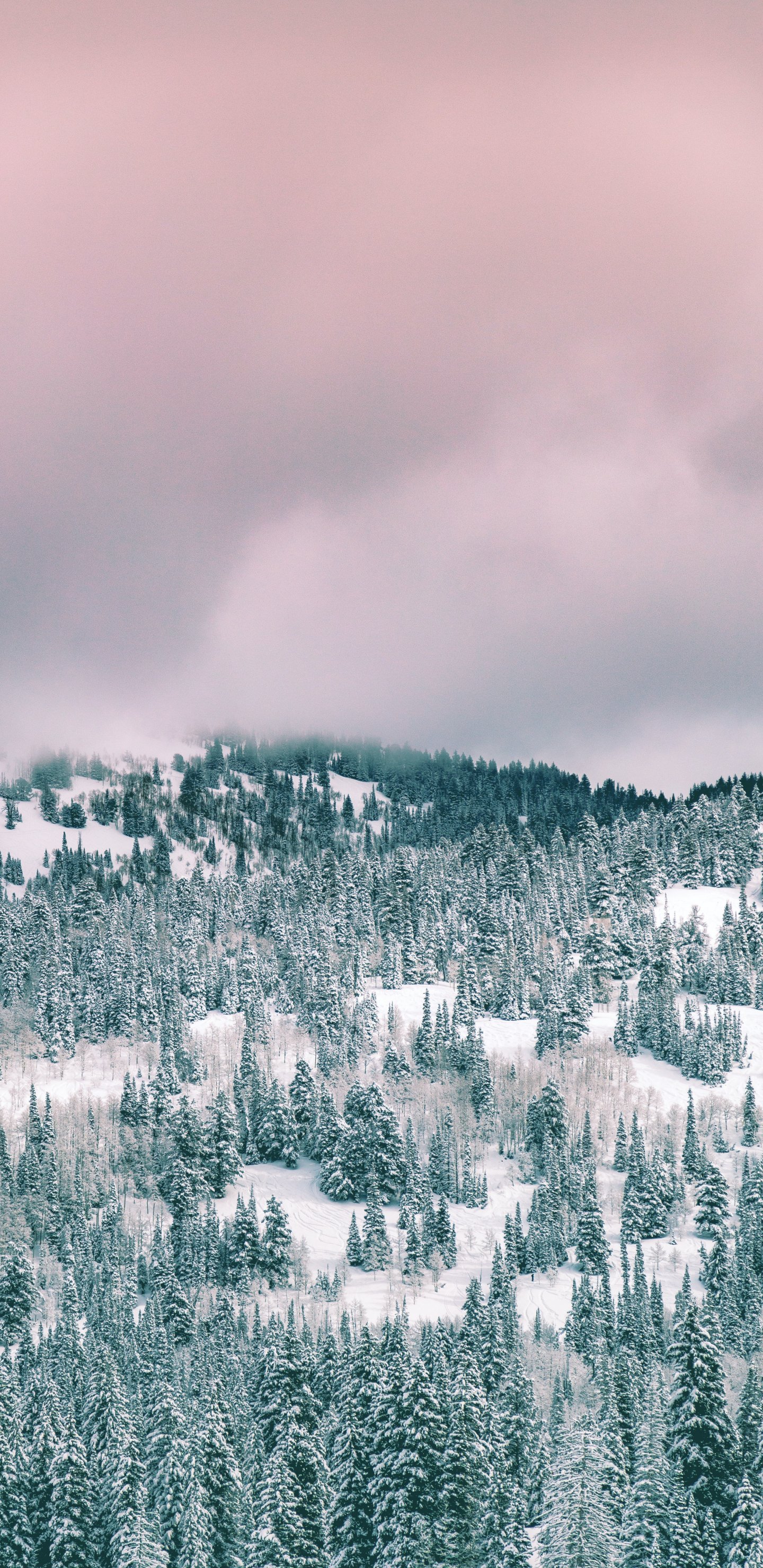 Обои: облака, зимний лес - 1440x2960