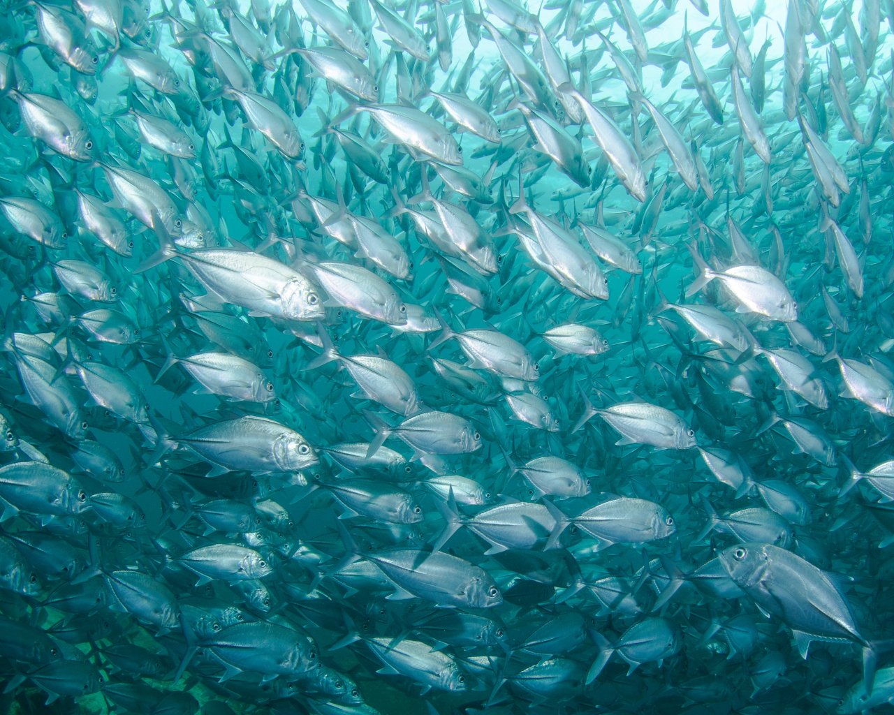 Обои: косяк рыб, морские обитатели - 1280x1024