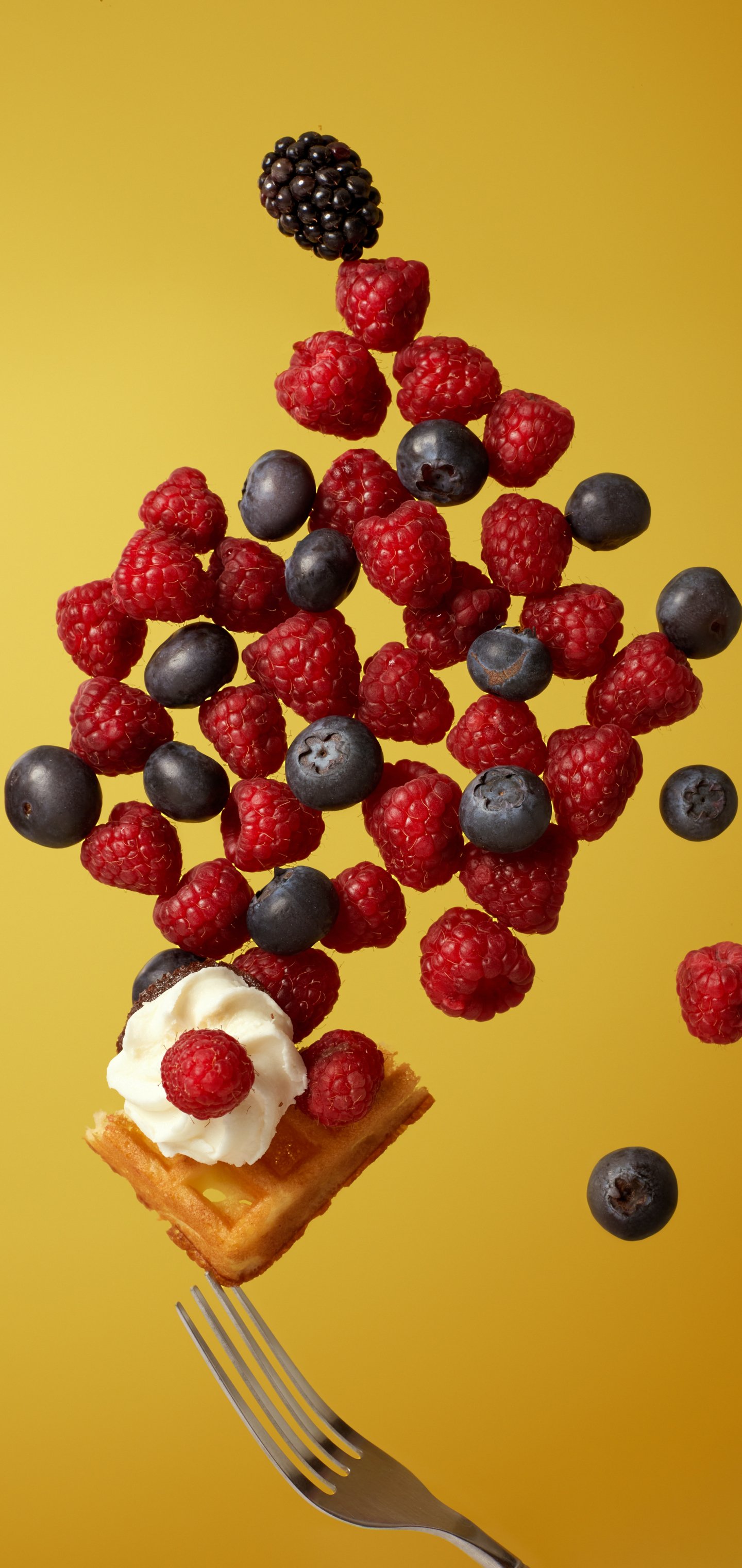 Обои: вафли, ягоды, десерт - 1440x3040