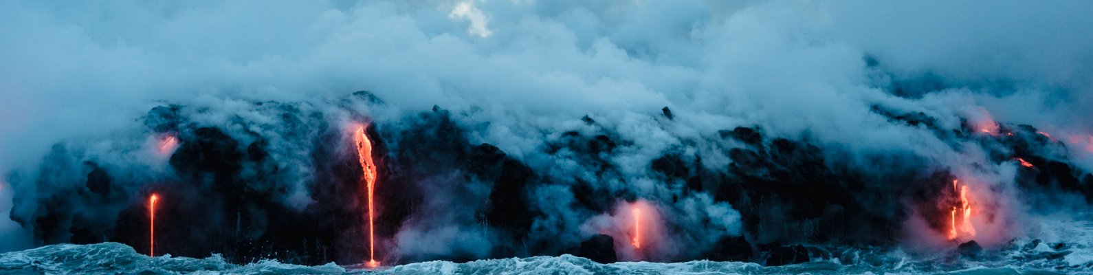 Обои: лава, море, облака, пар - 1590x400