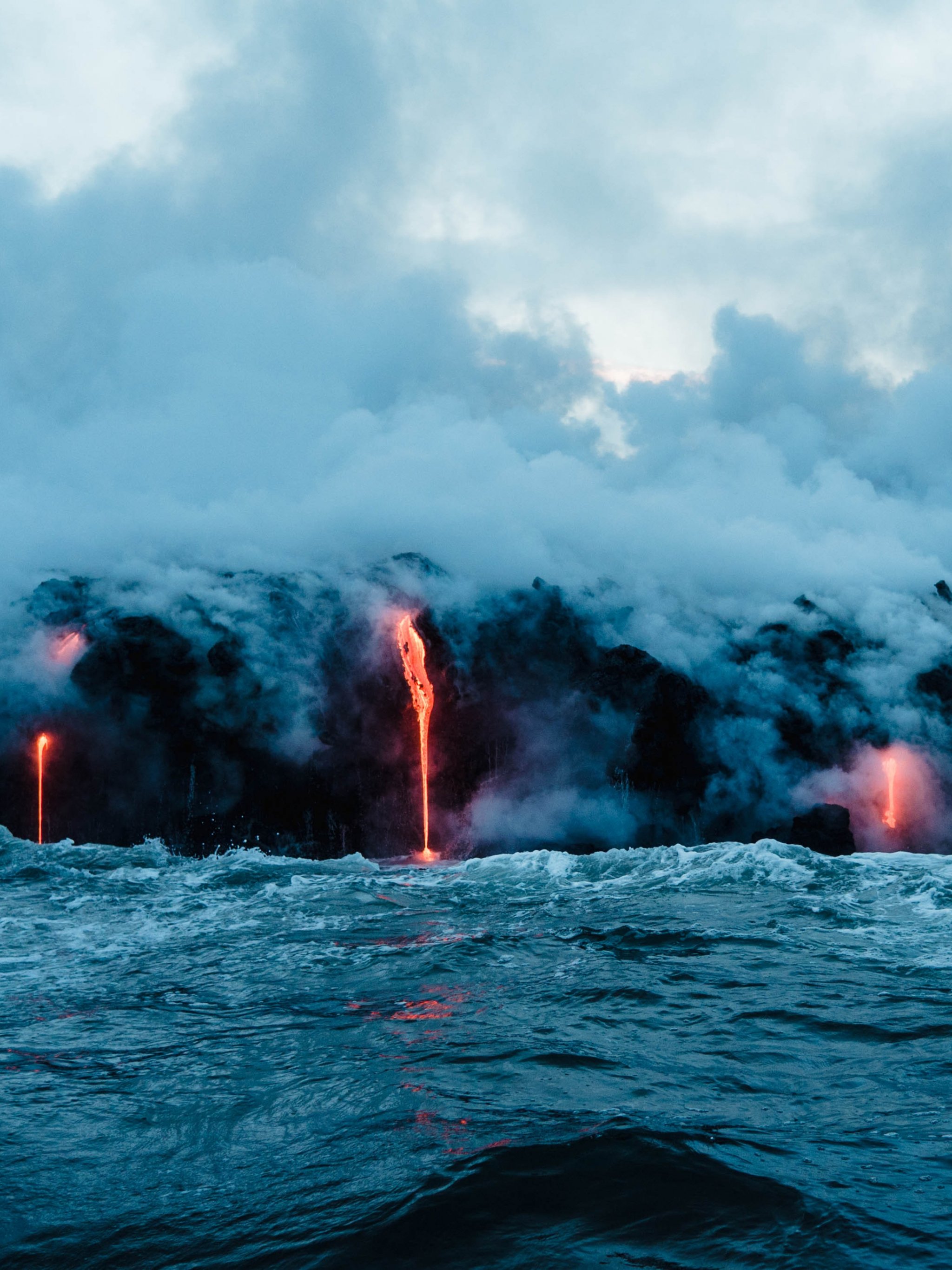Обои: лава, море, облака, пар - 2048x2732