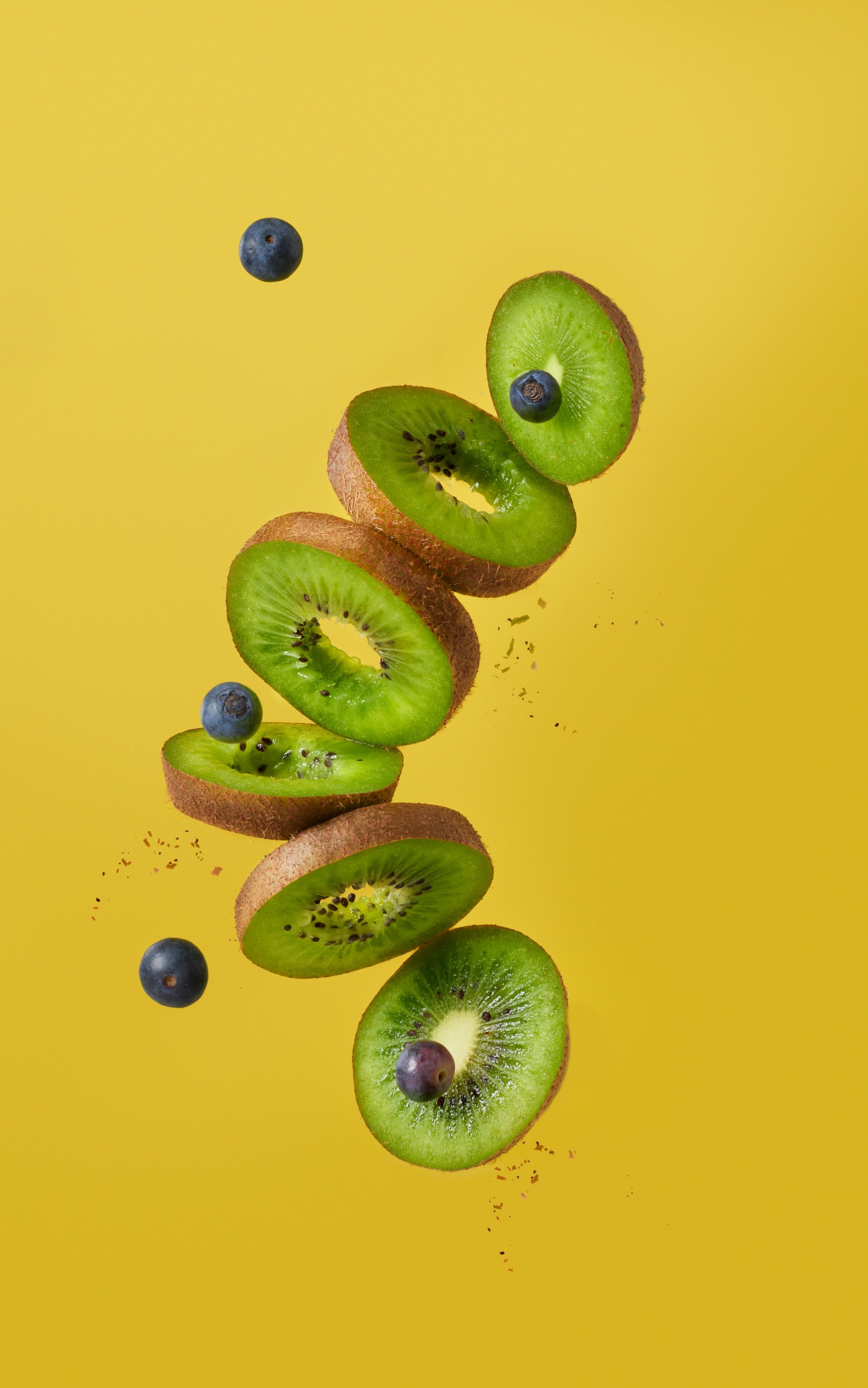 Обои: киви, черника, желтый фон - 1752x2800
