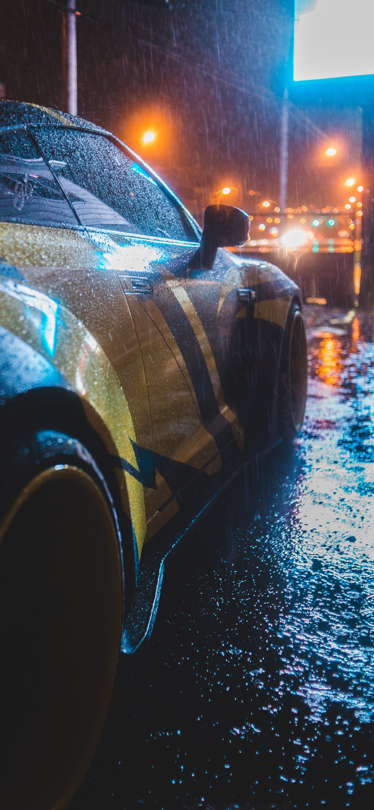 Обои: спортивная машина, дождь, ночь - 1284x2778