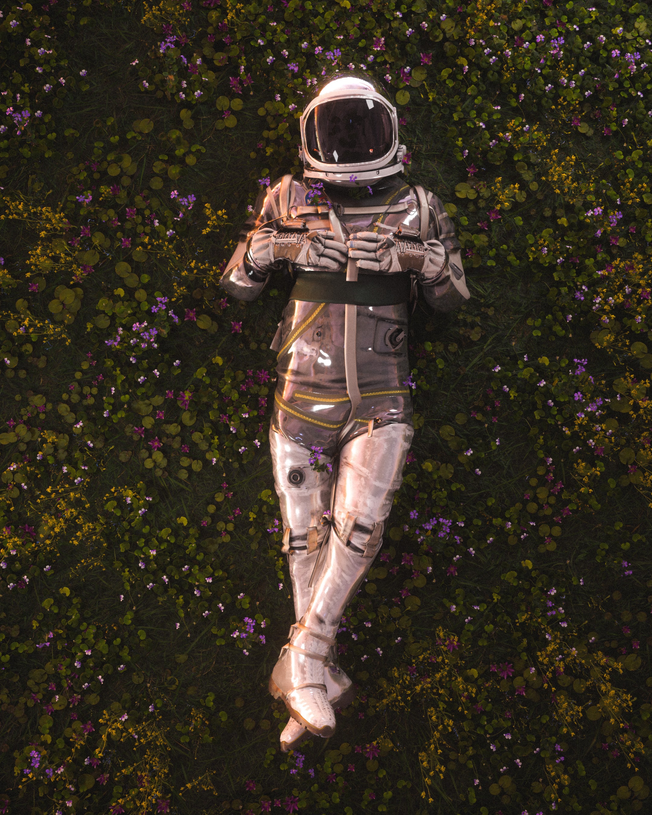 Обои: космонавт, поле, цветы - 2160x2700