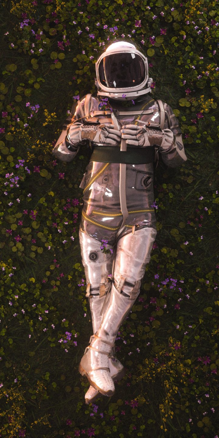 Обои: космонавт, поле, цветы - 720x1440