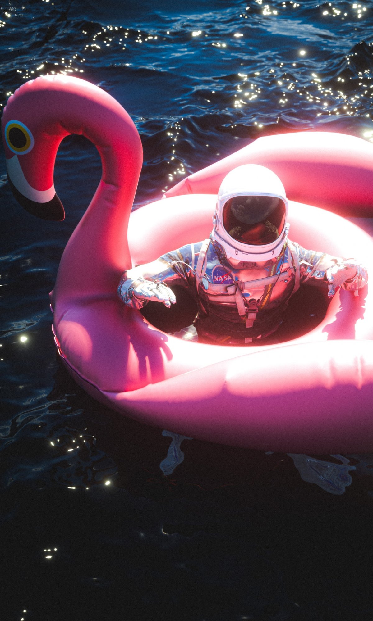 Обои: космонавт, надувной, фламинго - 1200x2000