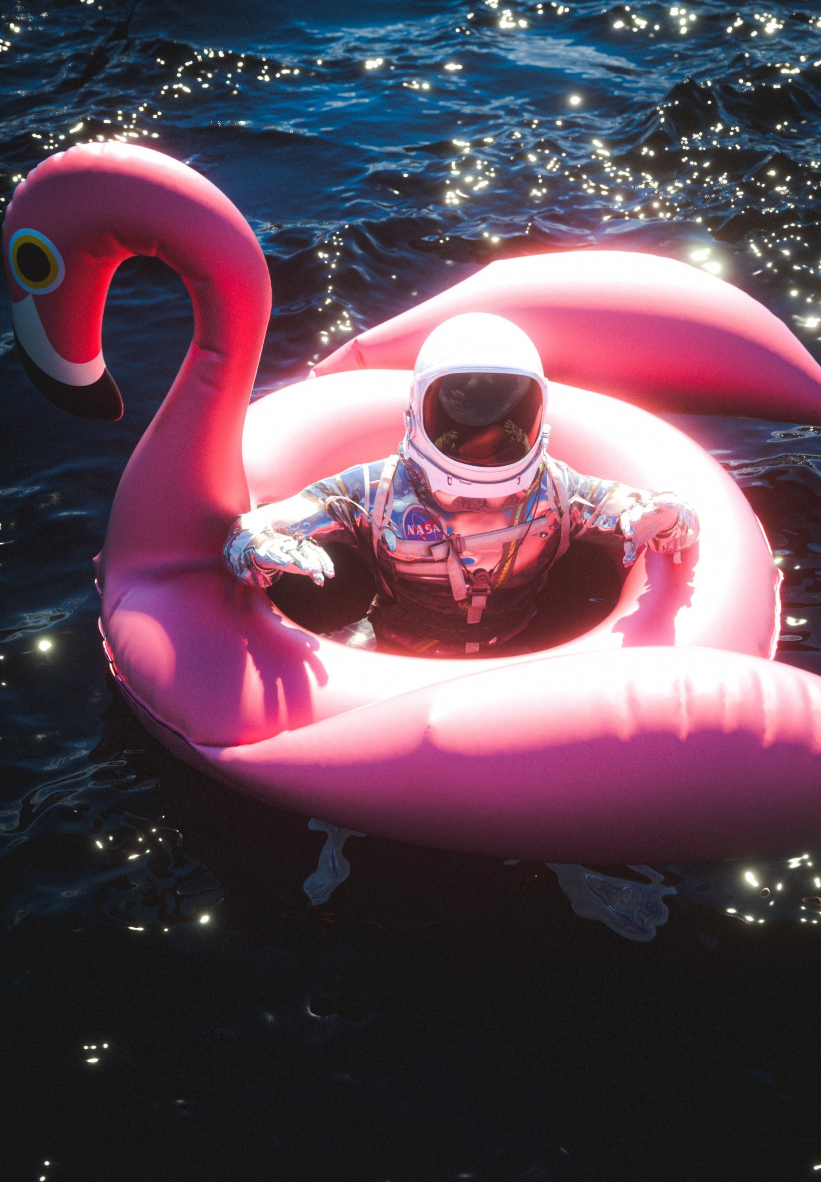 Обои: космонавт, надувной, фламинго - 1640x2360