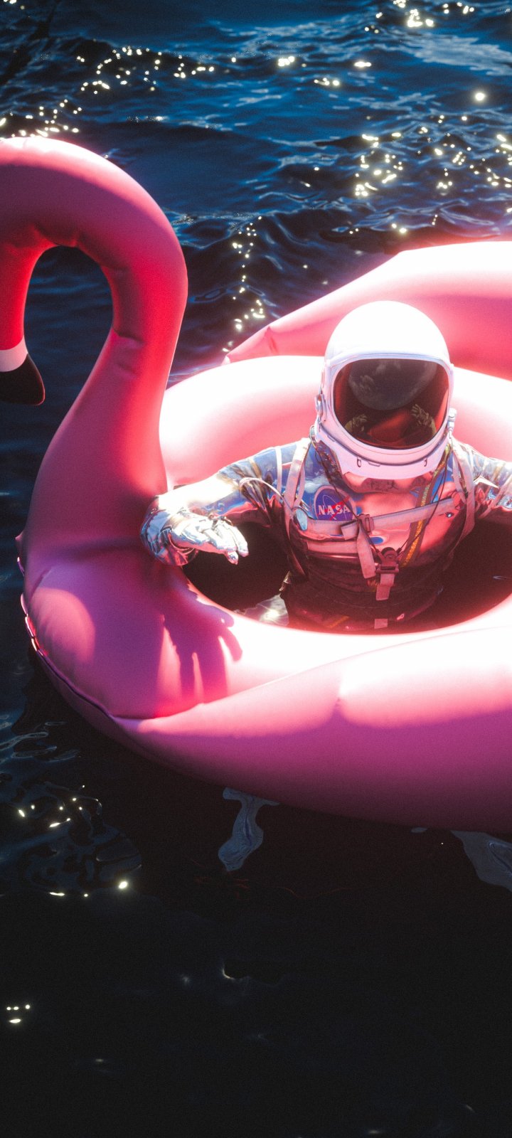Обои: космонавт, надувной, фламинго - 720x1600