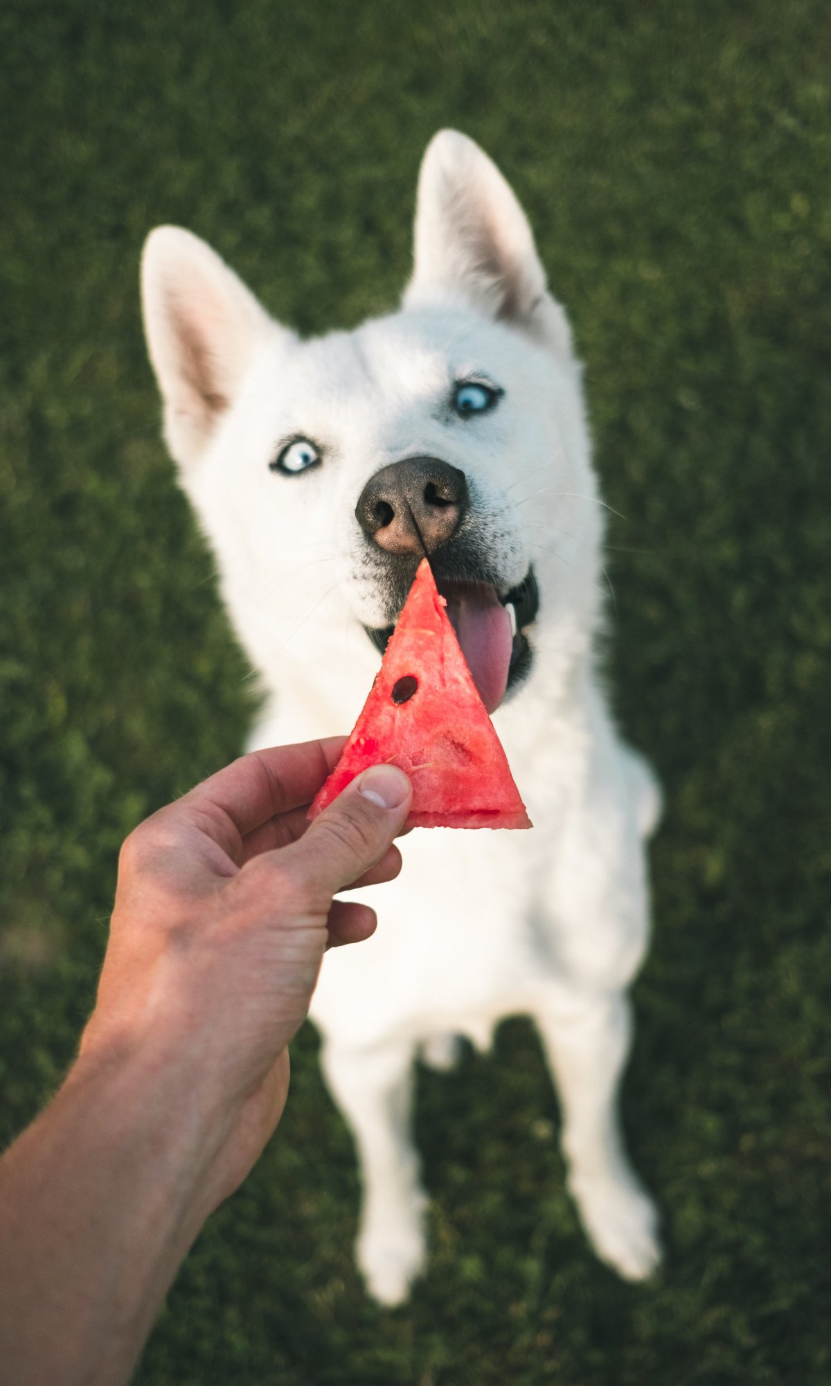 Обои: арбуз, собака, взгляд - 1200x2000