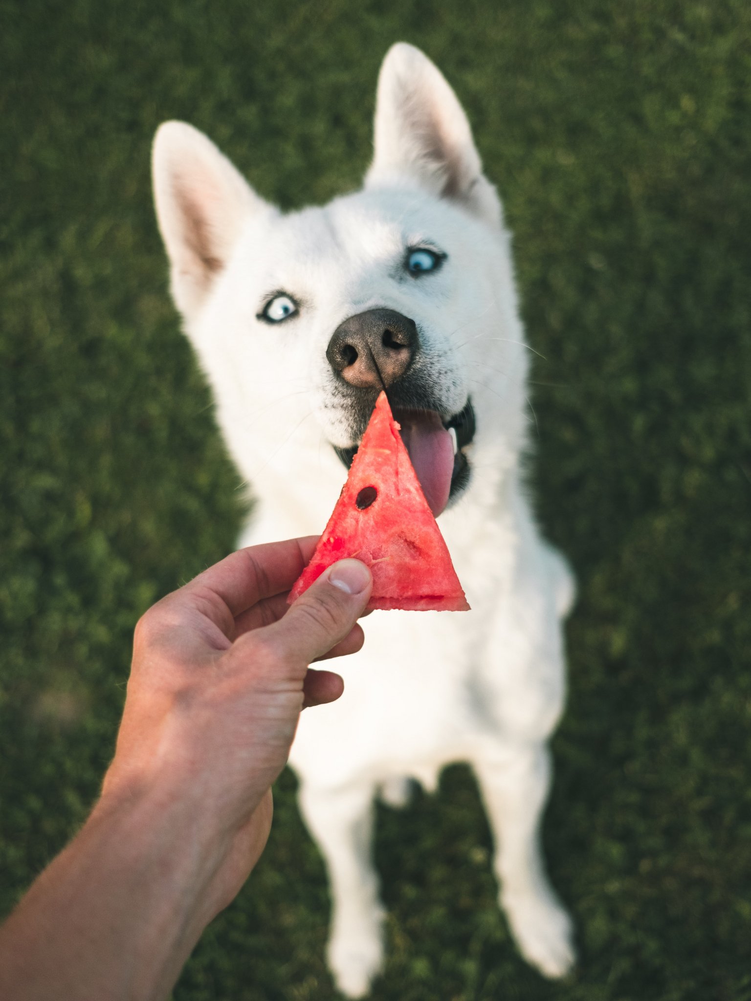 Обои: арбуз, собака, взгляд - 1536x2048