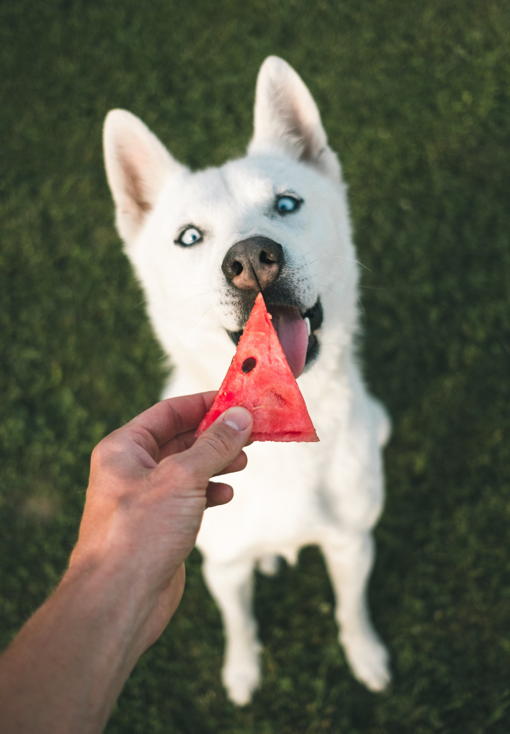 Обои: арбуз, собака, взгляд - 1640x2360