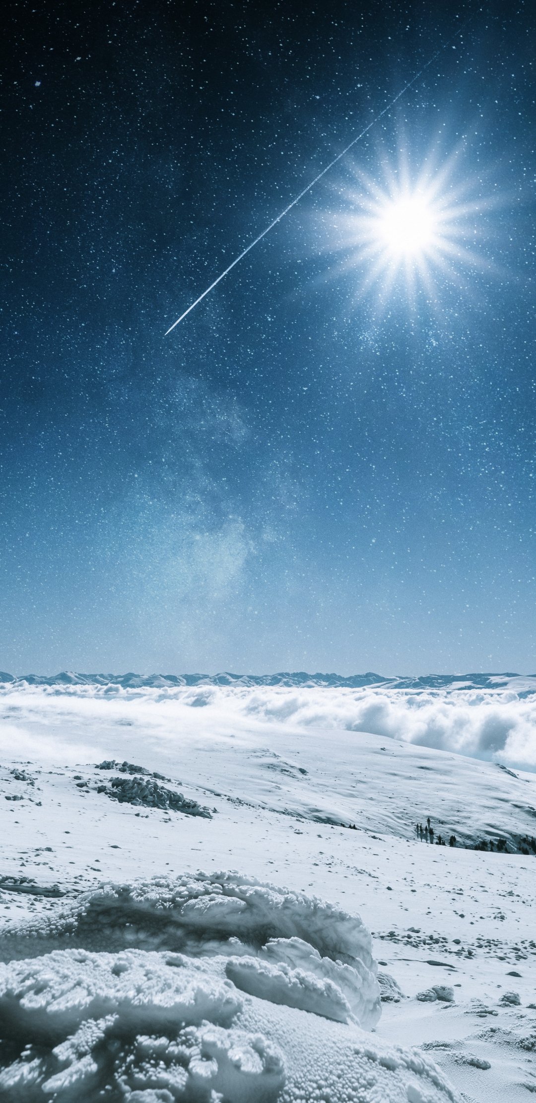 Обои: снег, солнце, звезды, зима - 1080x2220