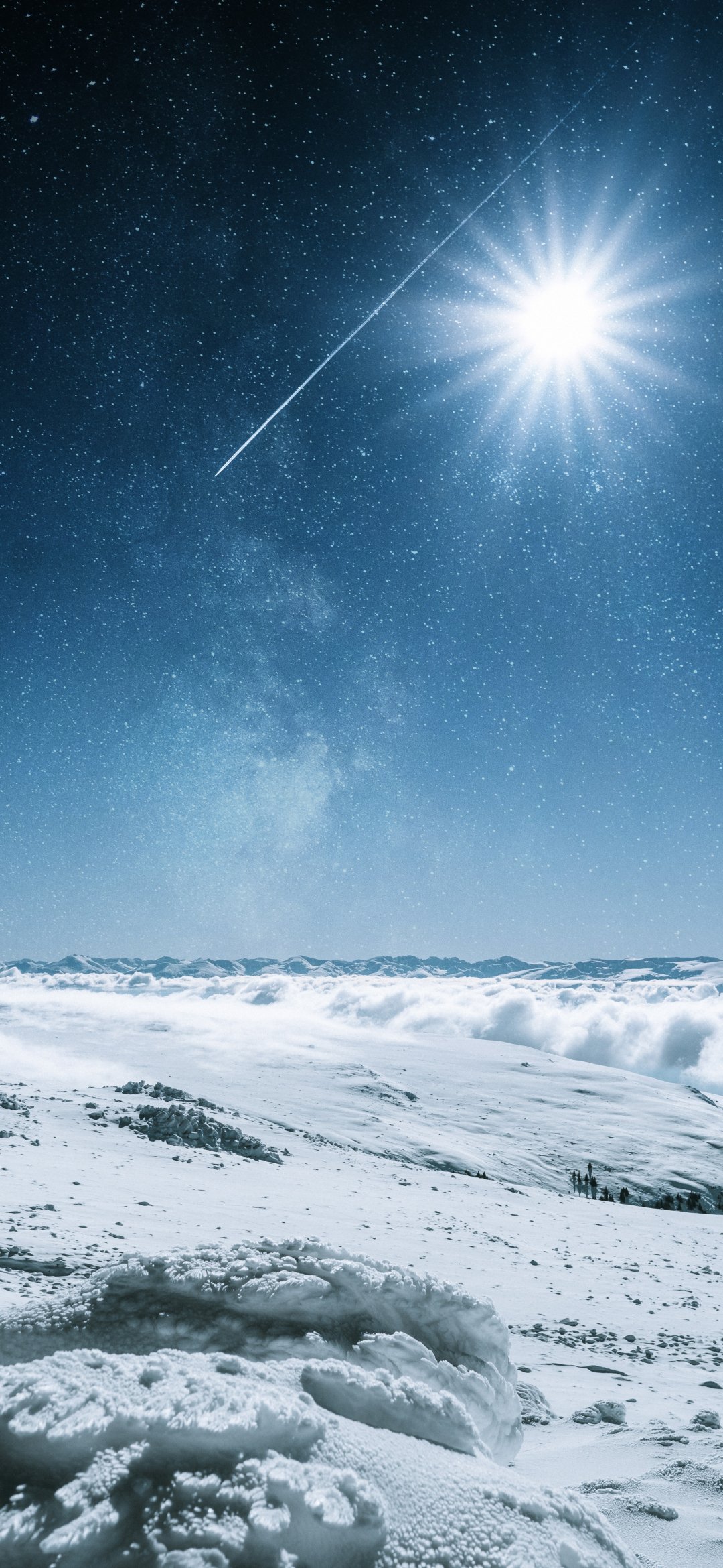 Обои: снег, солнце, звезды, зима - 1080x2340