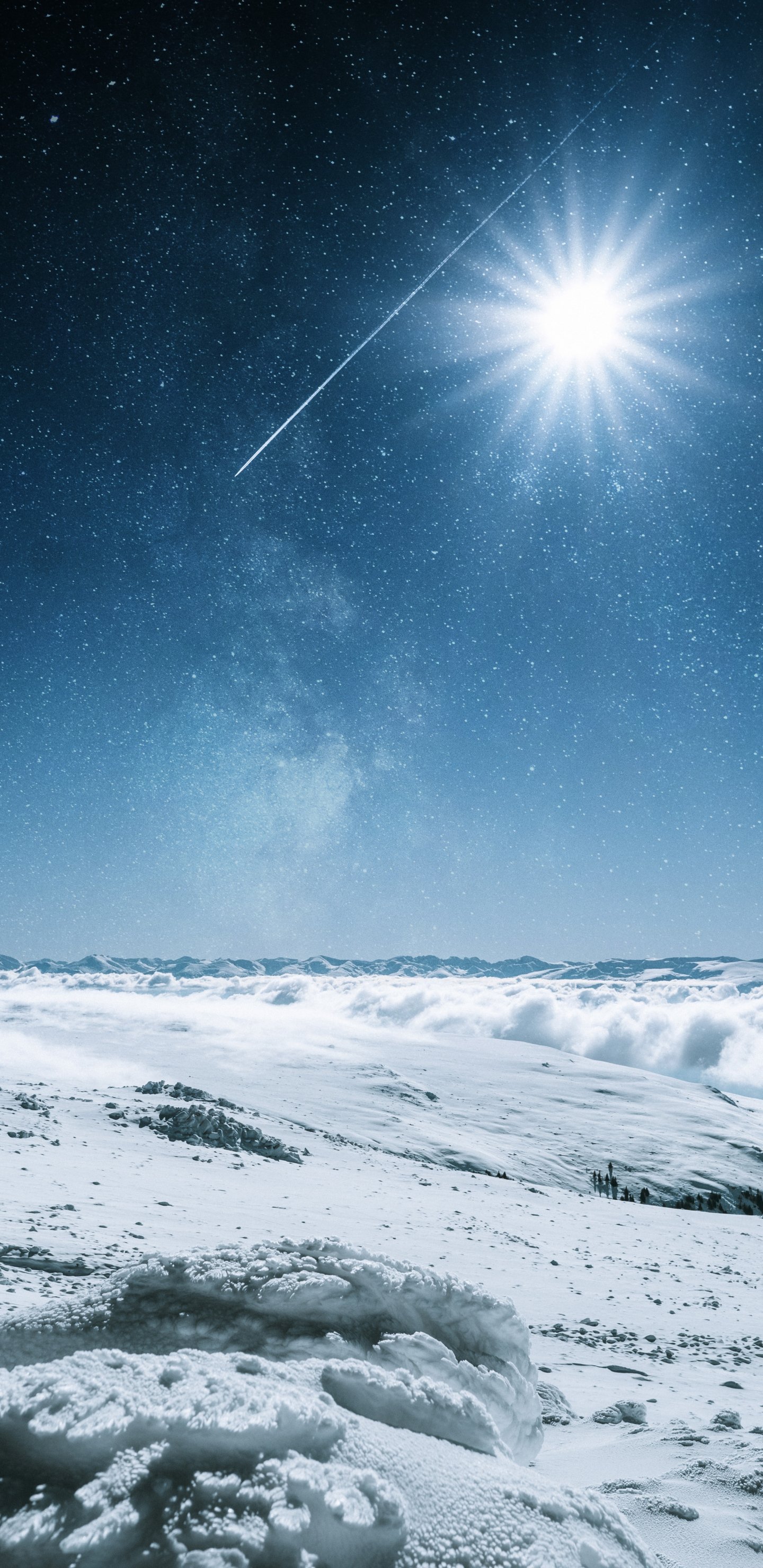 Обои: снег, солнце, звезды, зима - 1440x2960