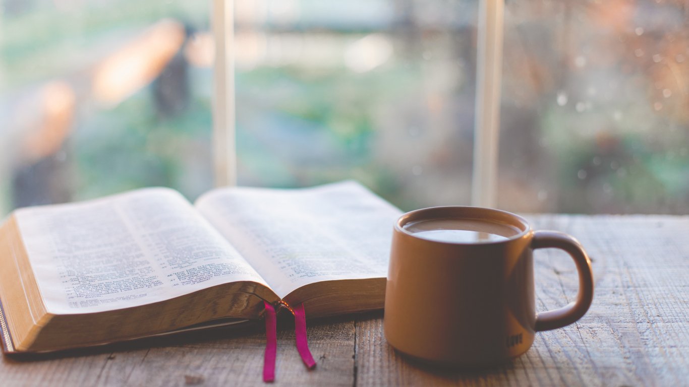 Обои: книга, кофе, стол - 1366x768