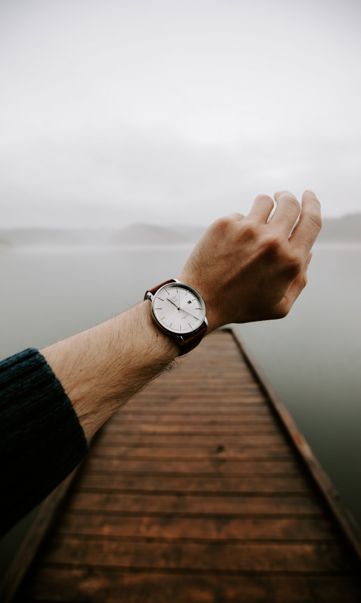 Обои: часы, озеро, туман - 1200x2000