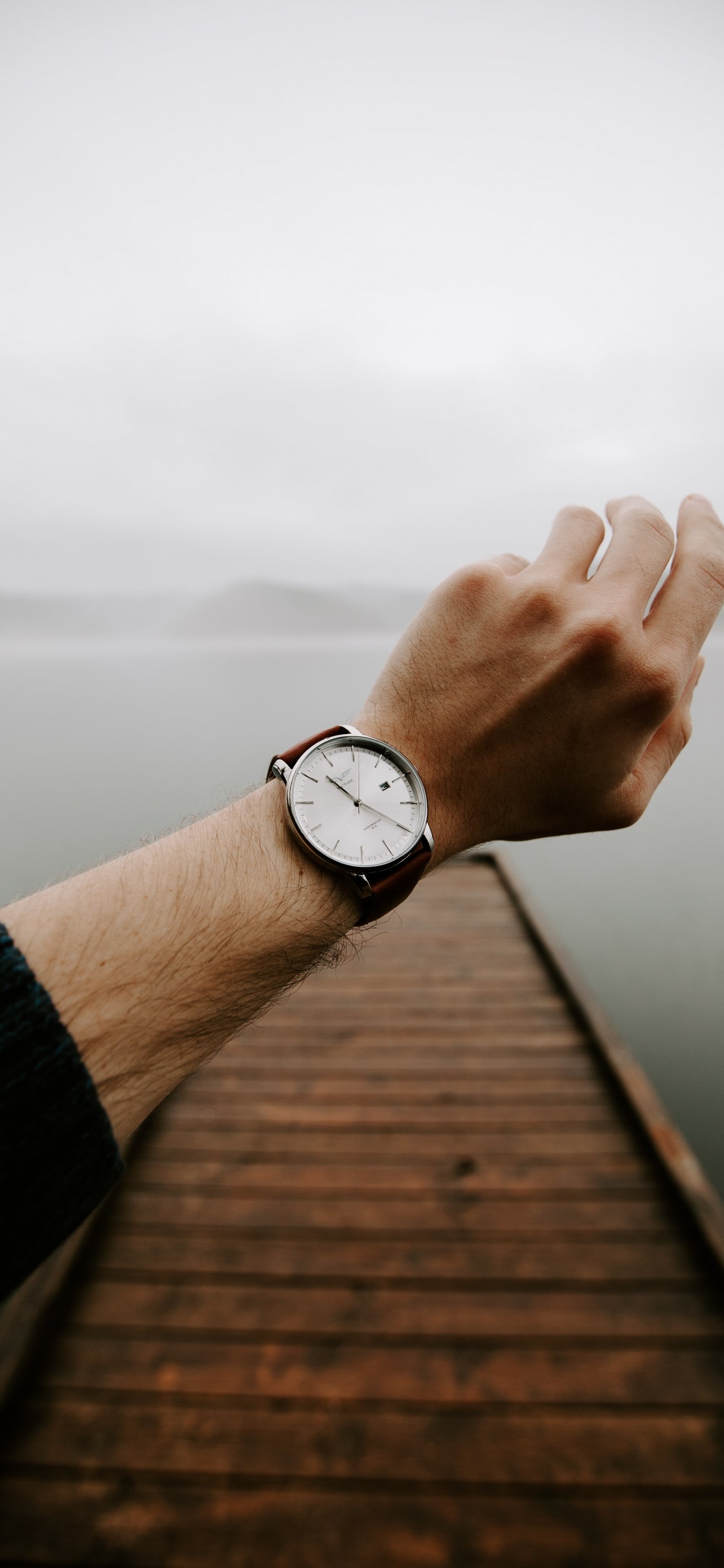Обои: часы, озеро, туман - 1284x2778
