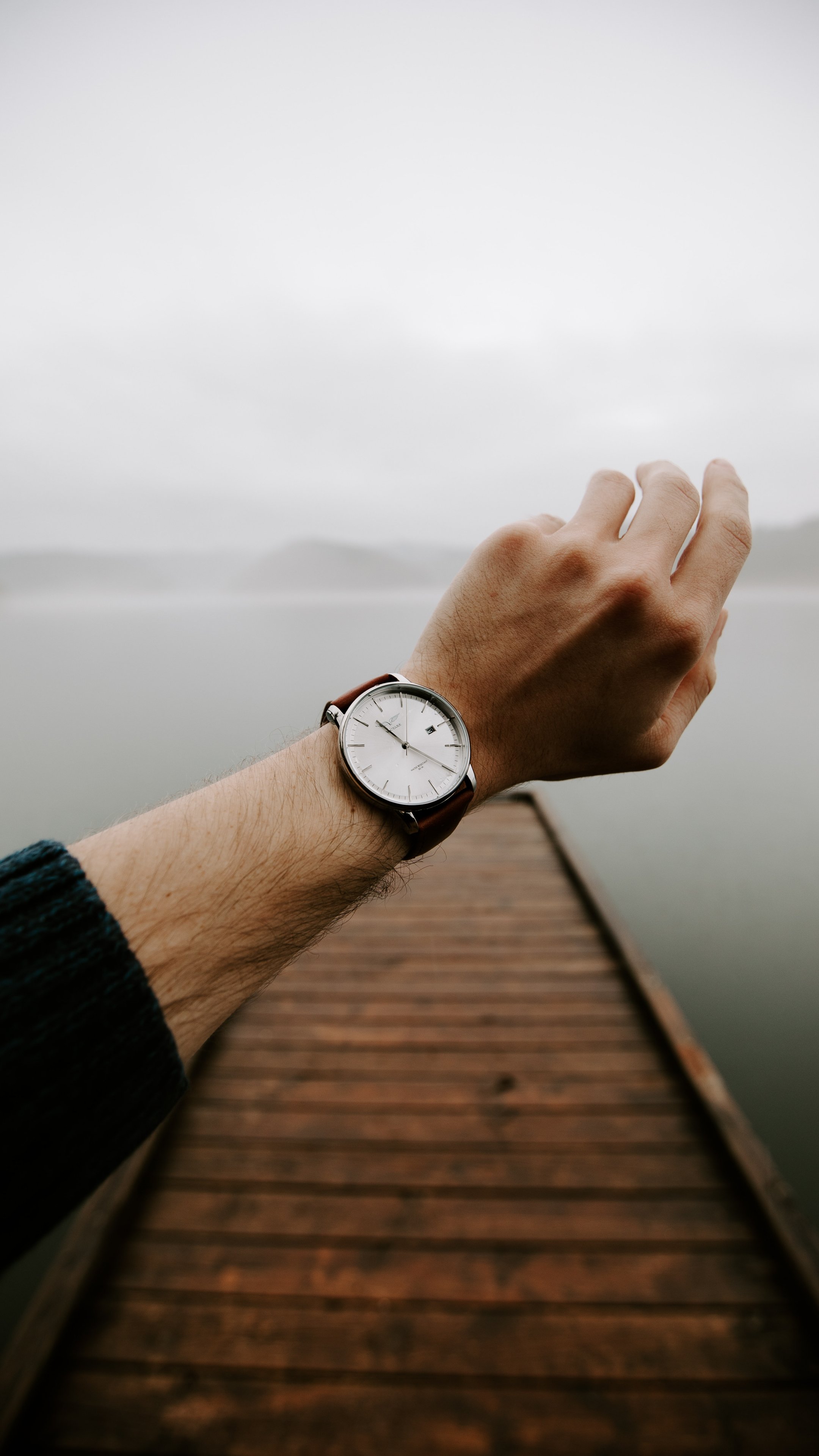 Обои: часы, озеро, туман - 2160x3840