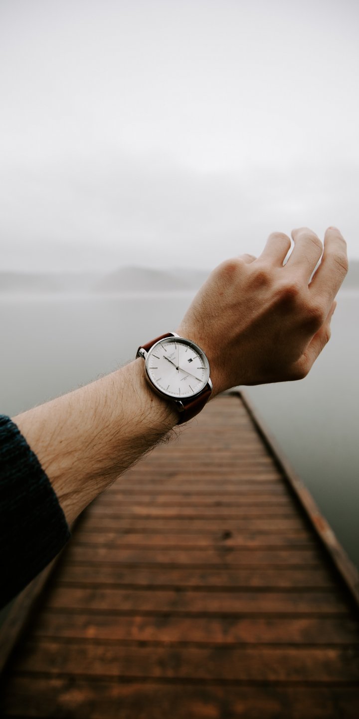 Обои: часы, озеро, туман - 720x1440