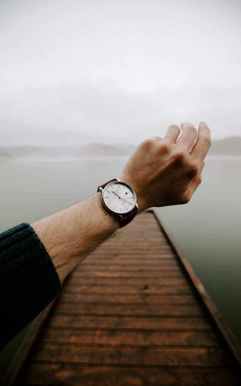 Обои: часы, озеро, туман - 800x1280