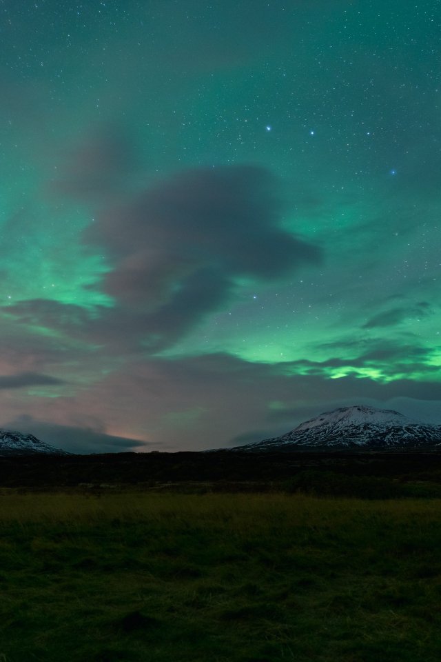 Обои: горы, небо, сияние - 640x960