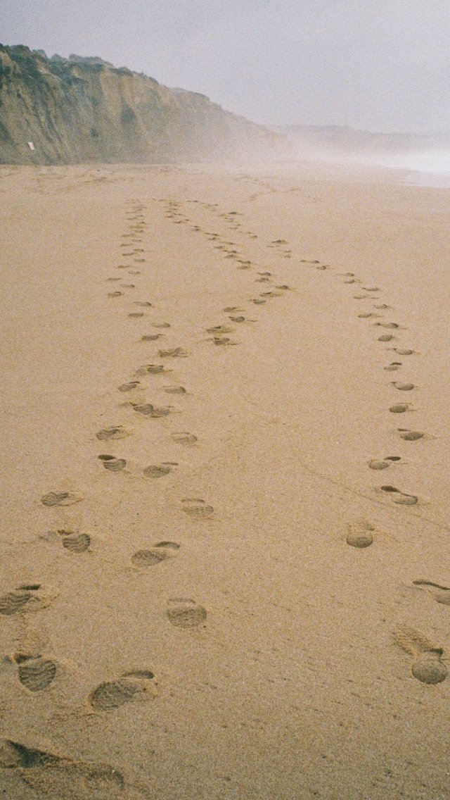 Обои: песок, следы, море - 640x1136