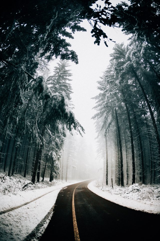 Обои: дорога, зима, снег - 640x960