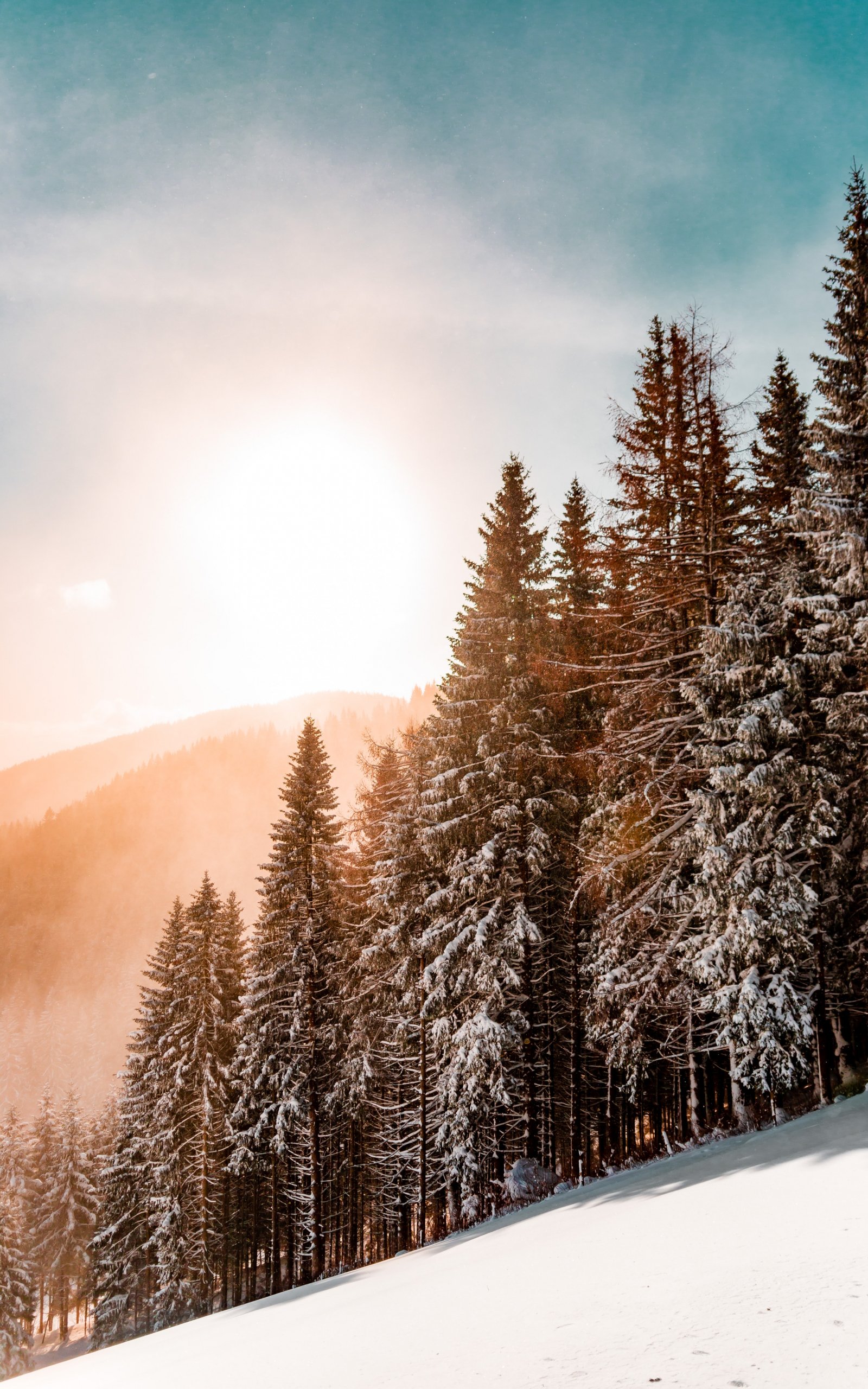 Обои: снежный лес, рассвет, зима - 1600x2560