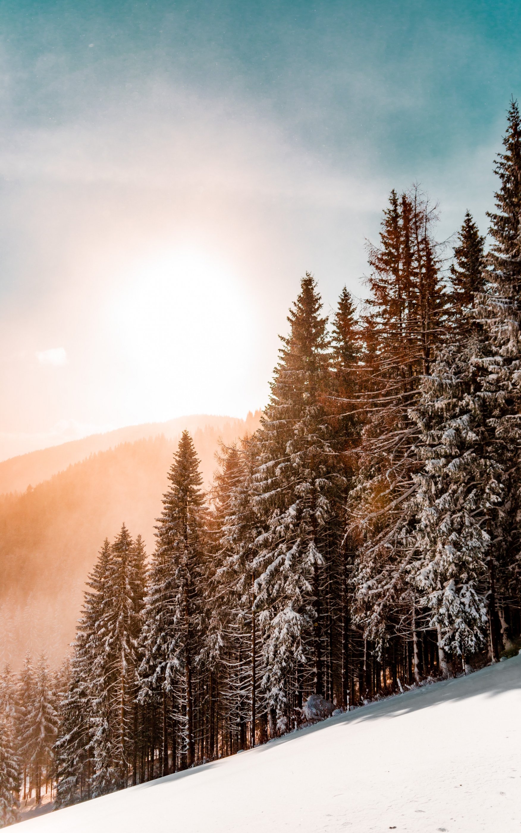 Обои: снежный лес, рассвет, зима - 1752x2800