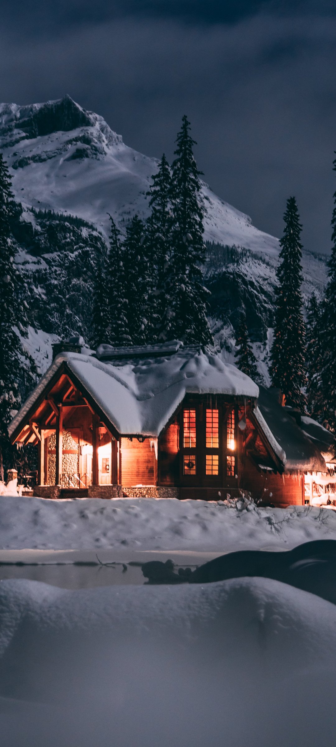 Обои: дом в лесу, зима, ночь - 1080x2400