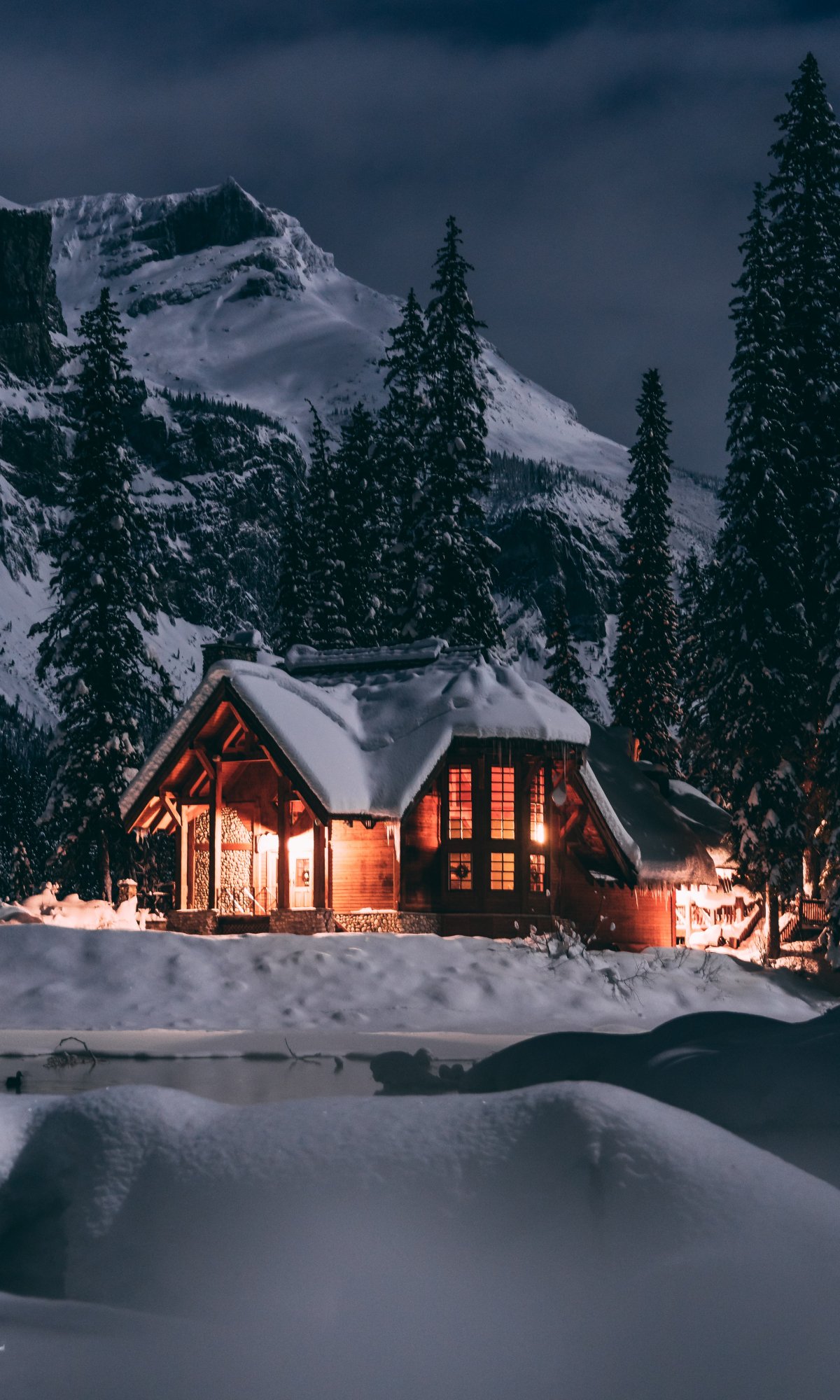 Обои: дом в лесу, зима, ночь - 1200x2000