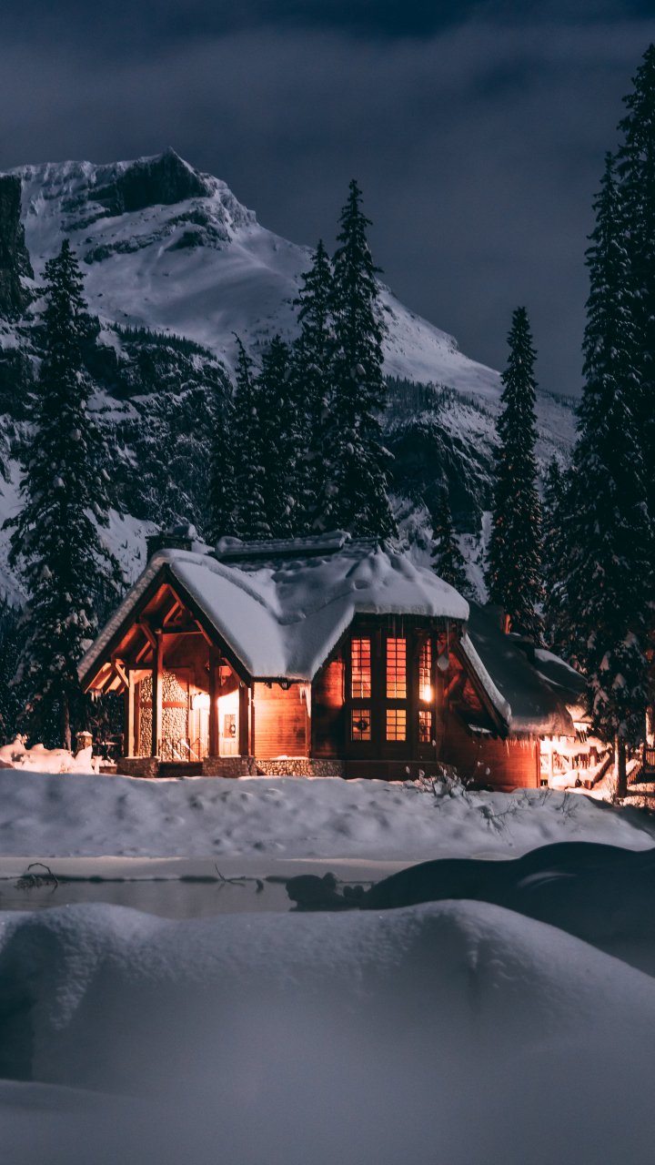Обои: дом в лесу, зима, ночь - 720x1280