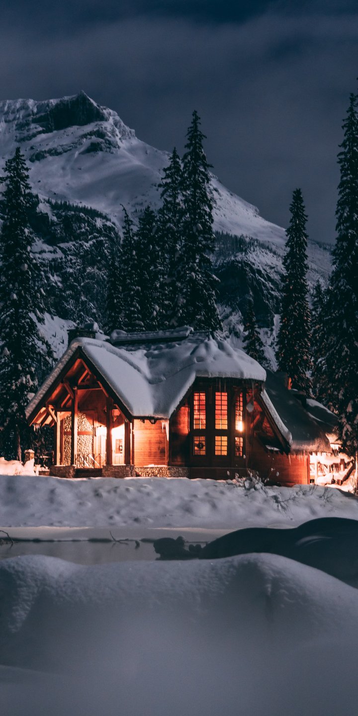 Обои: дом в лесу, зима, ночь - 720x1440