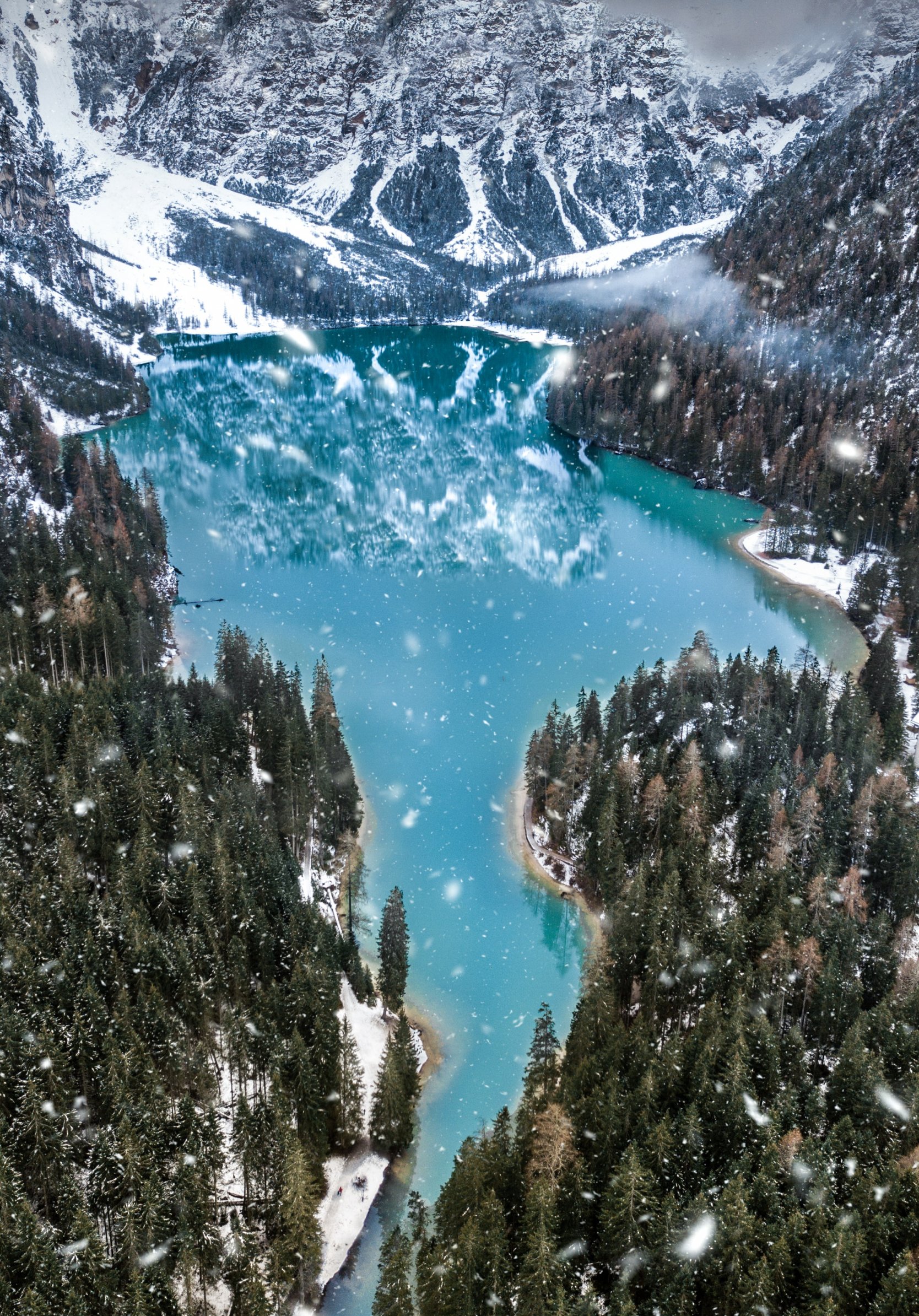 Обои: горы, лес, снегопад - 1668x2388