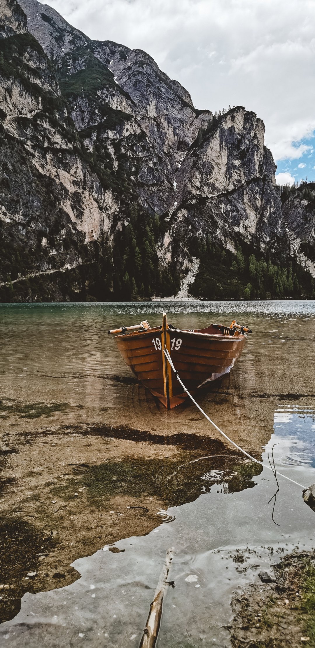 Обои: горы, озеро, лодка - 1080x2220