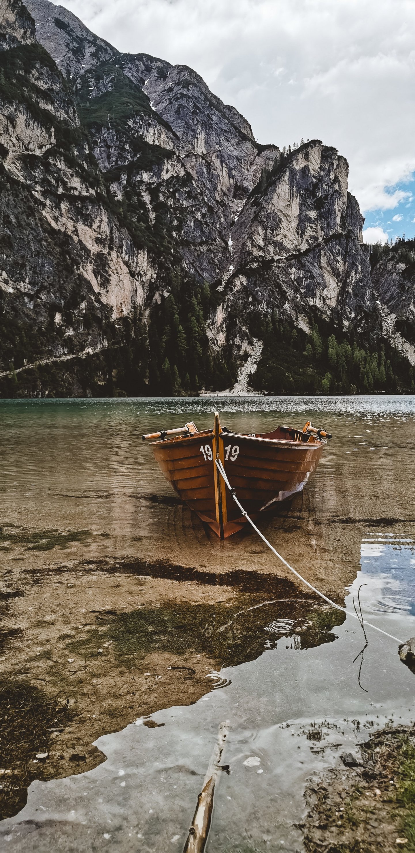 Обои: горы, озеро, лодка - 1440x2960