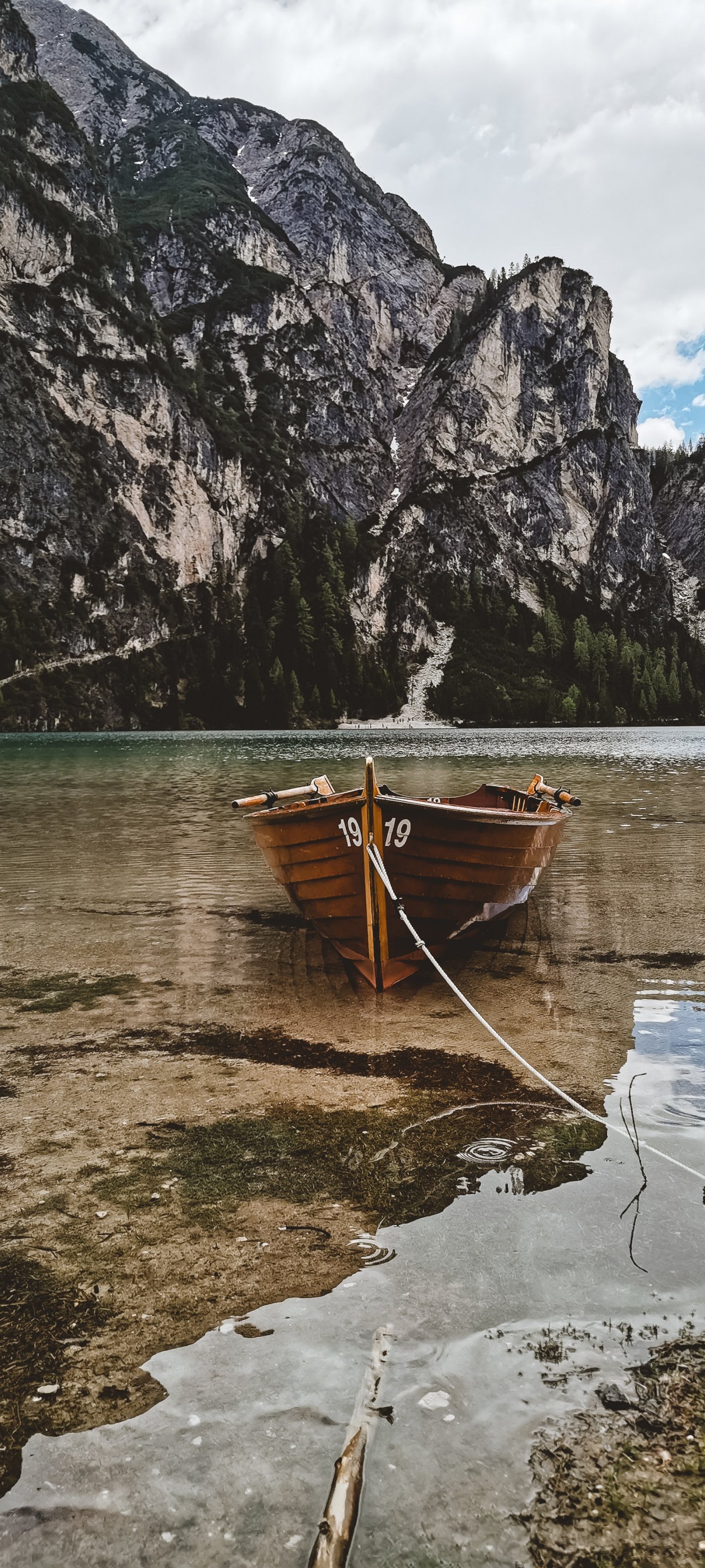 Обои: горы, озеро, лодка - 1440x3200