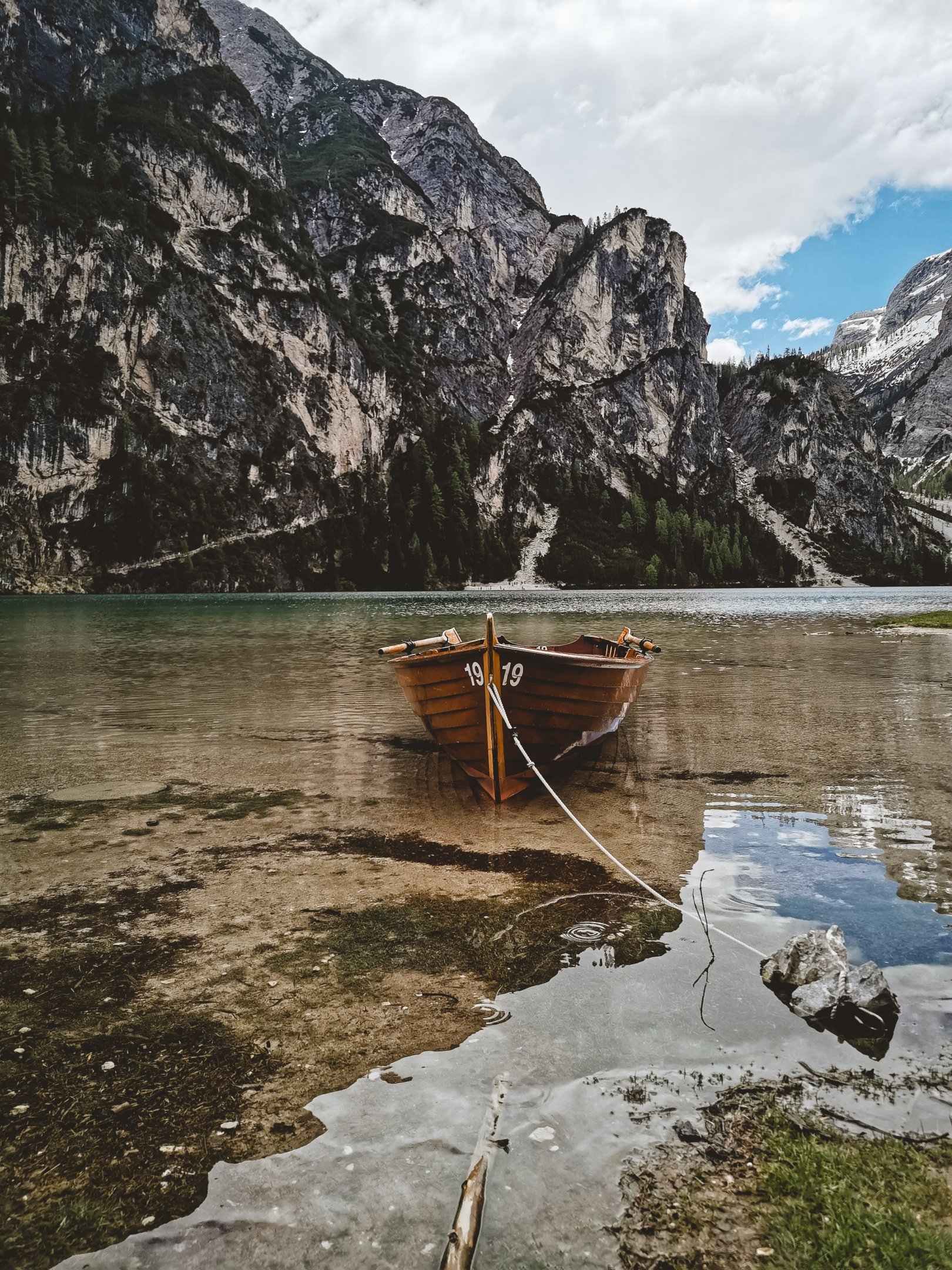 Обои: горы, озеро, лодка - 1620x2160