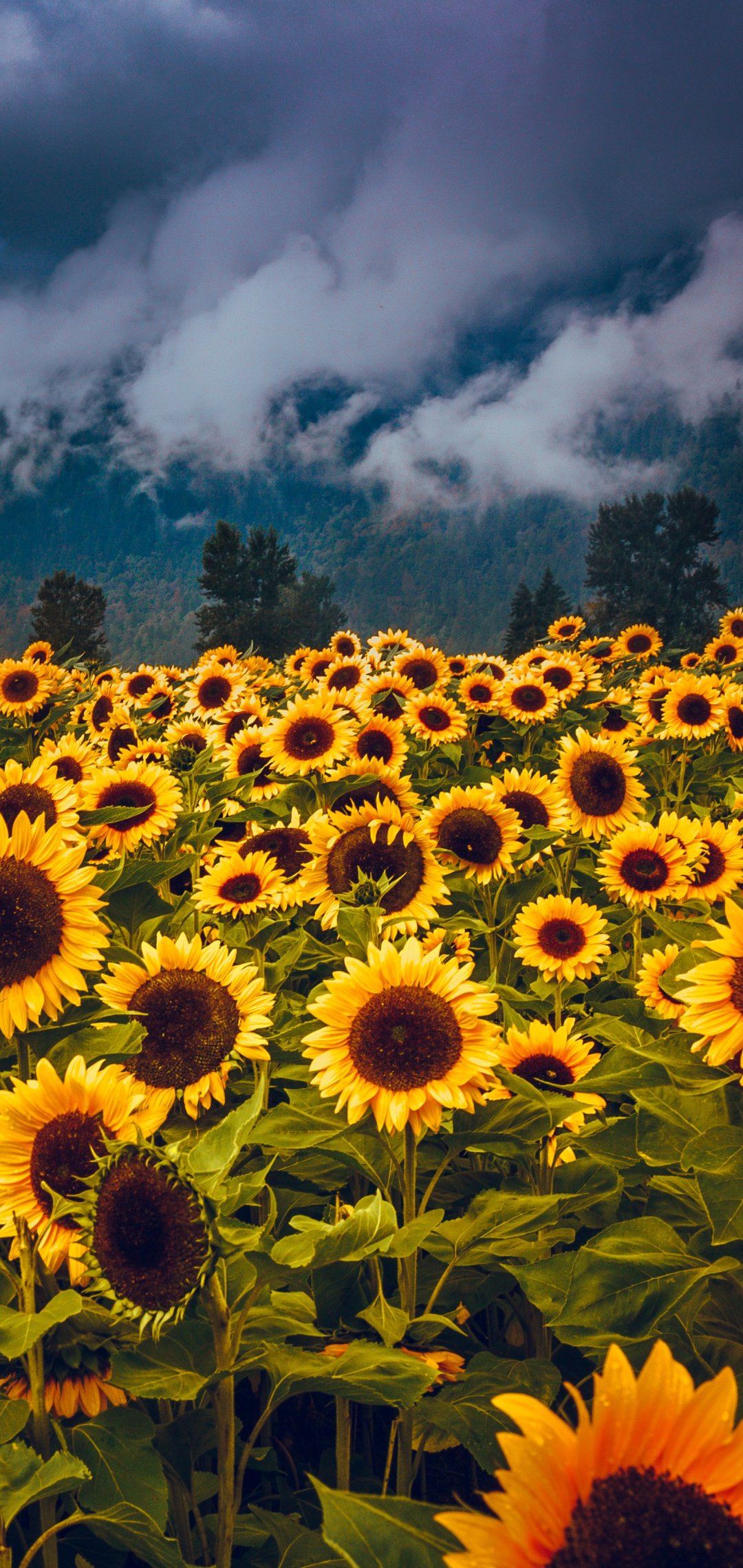 Обои: цветочное поле, горы - 1080x2280