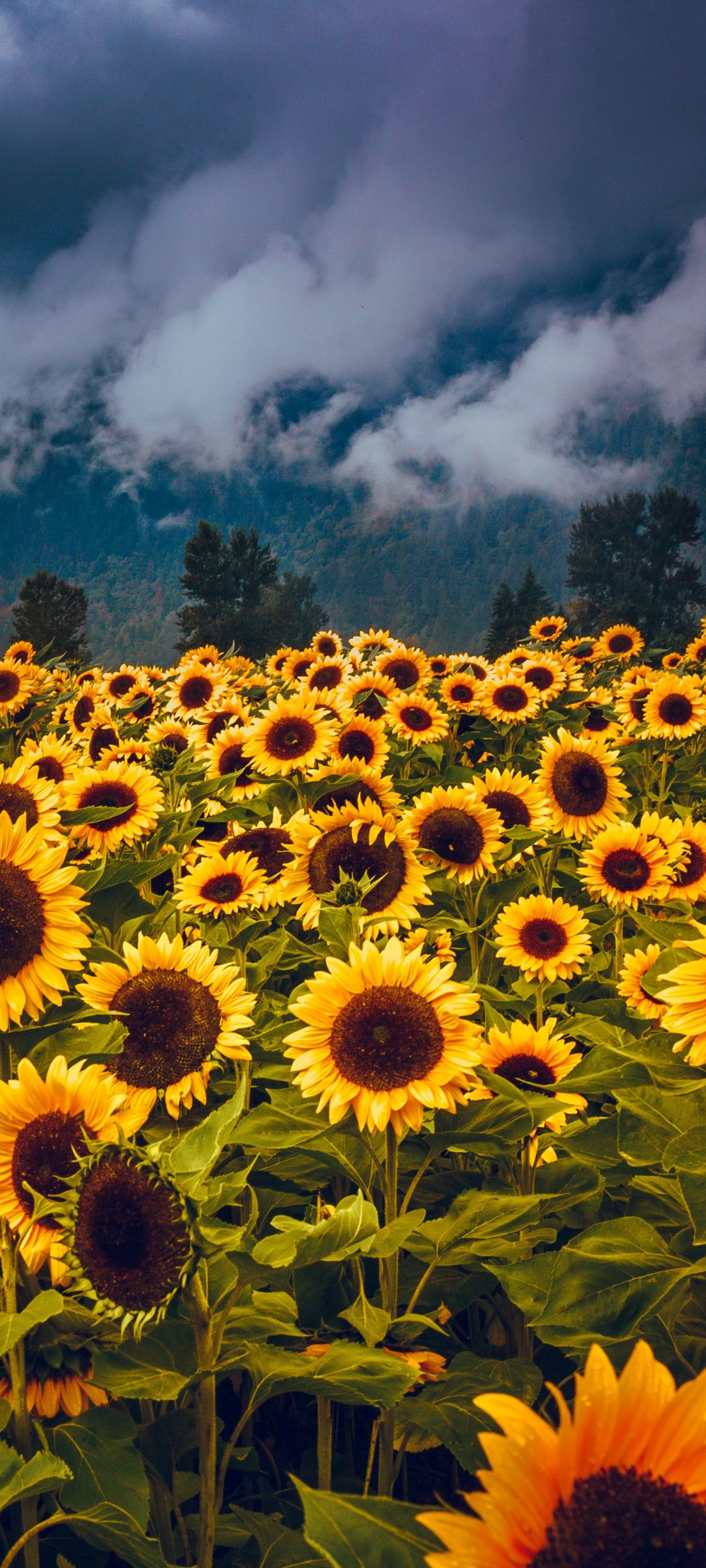 Обои: цветочное поле, горы - 1080x2400