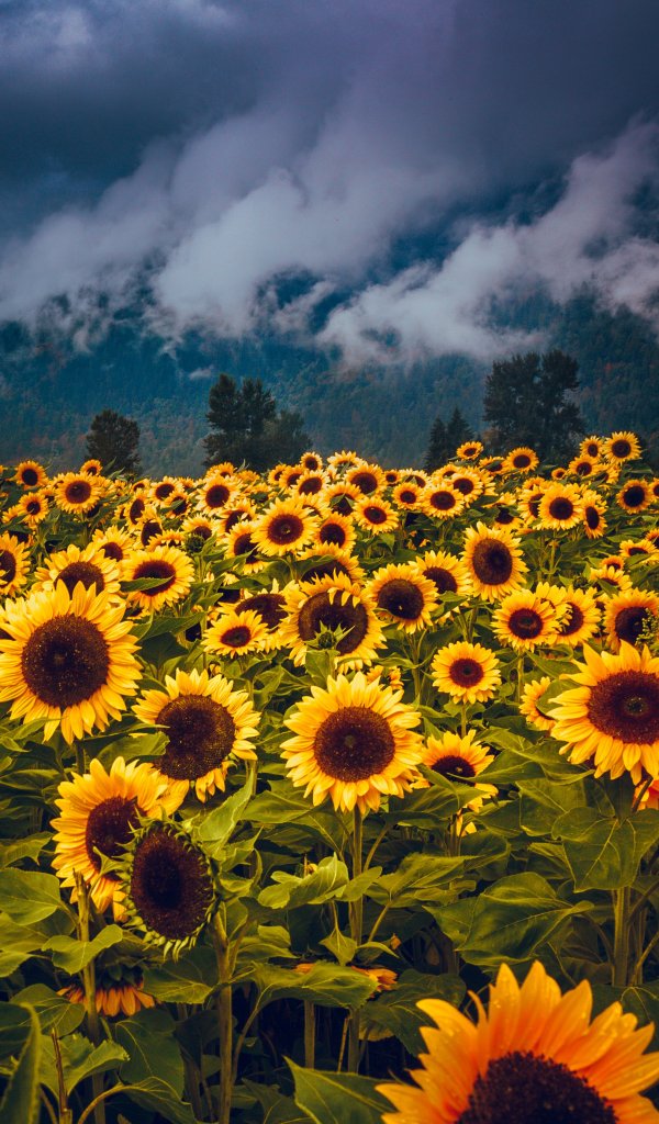 Обои: цветочное поле, горы - 600x1024