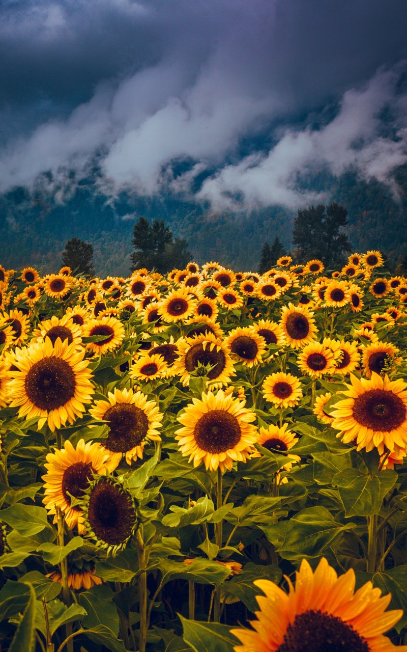 Обои: цветочное поле, горы - 800x1280