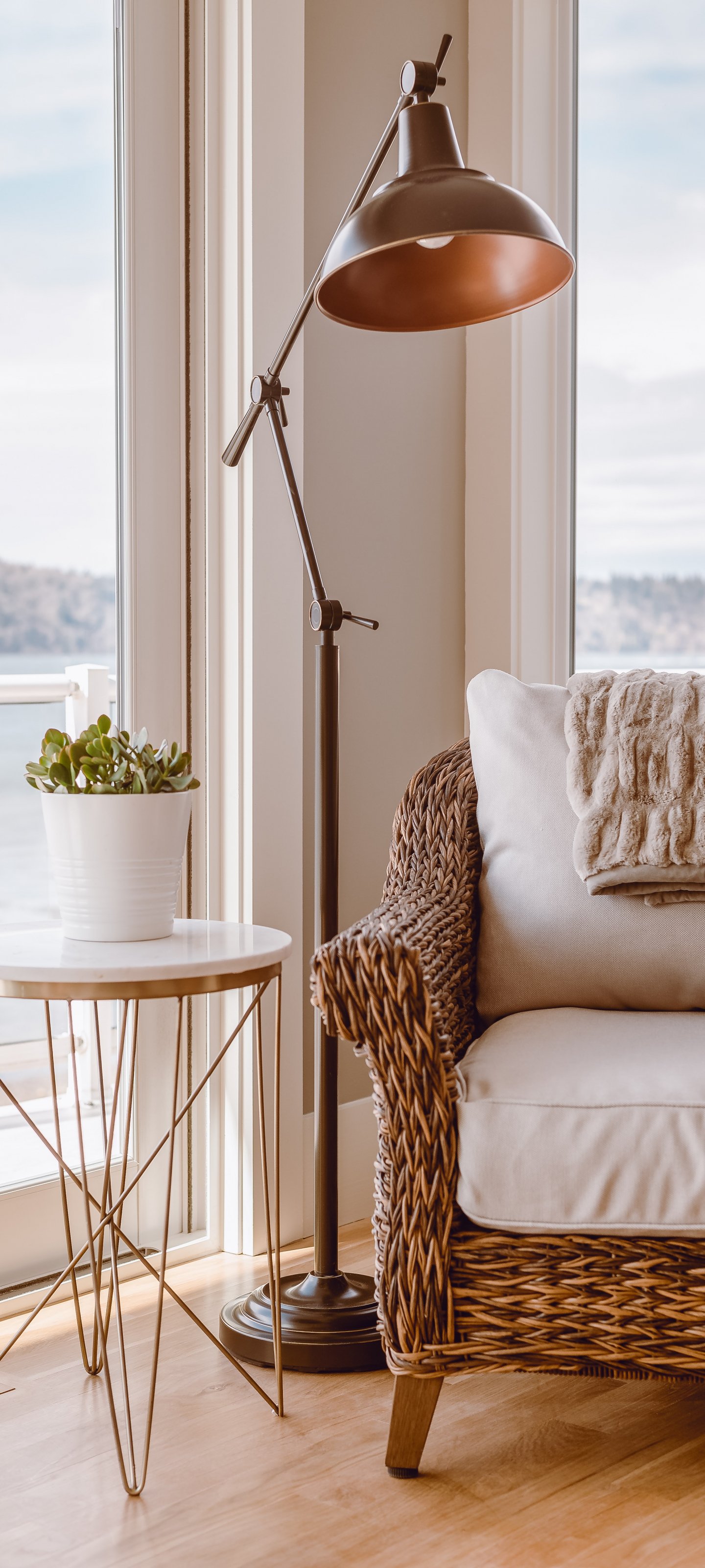 Обои: интерьер, кресло, лампа - 1440x3200