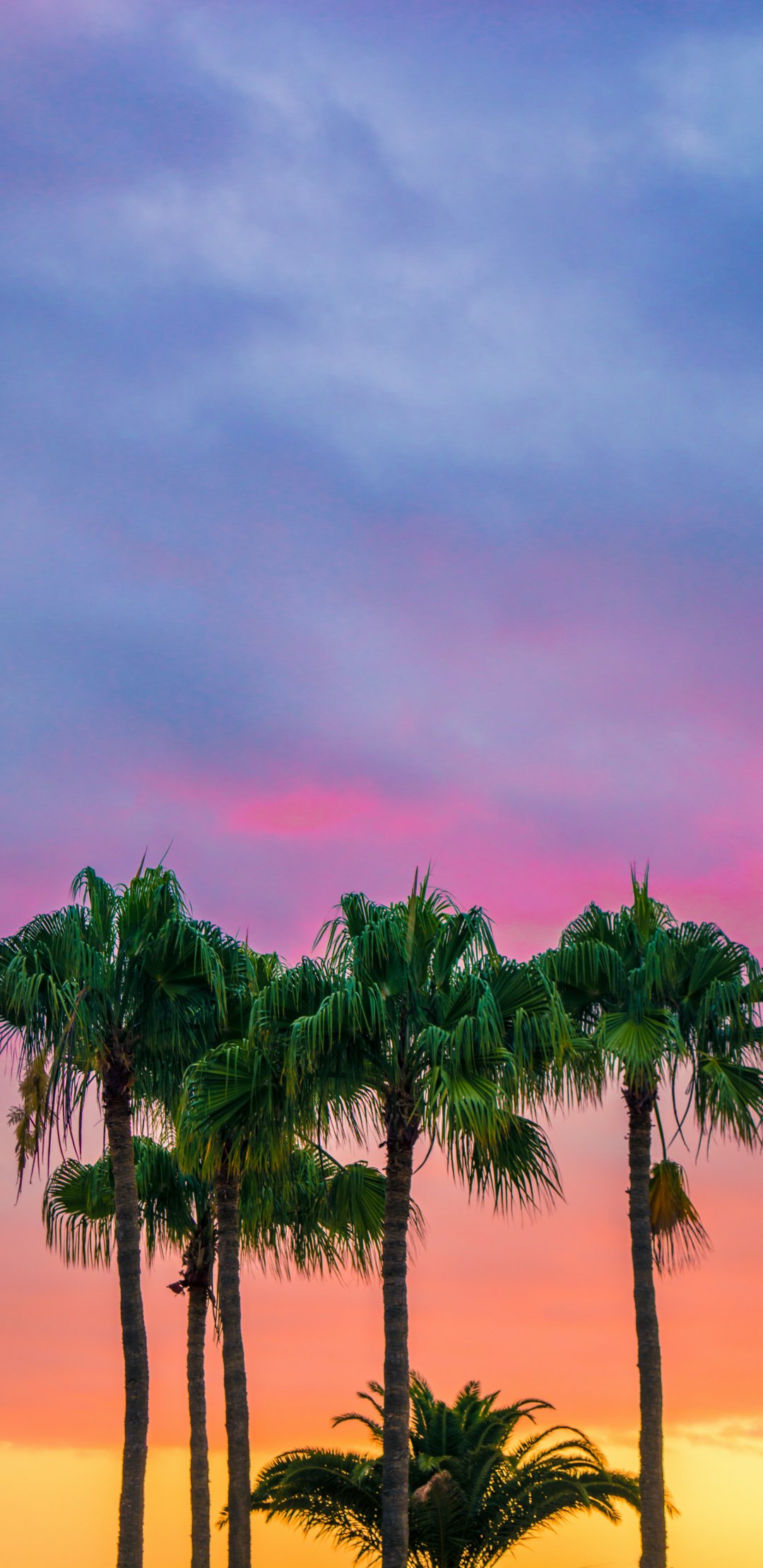 Обои: пальмы, закат, небо - 1080x2220