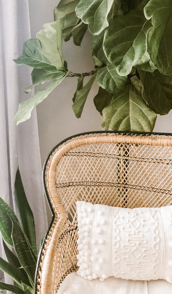 Обои: кресло, подушка, растение - 600x1024