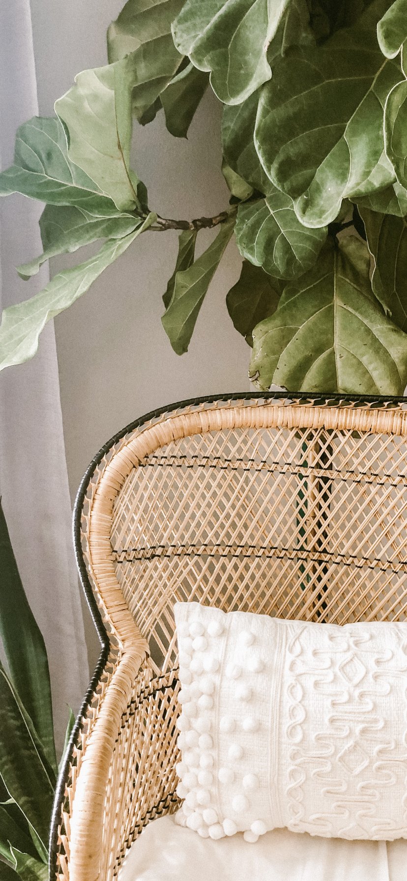 Обои: кресло, подушка, растение - 828x1792