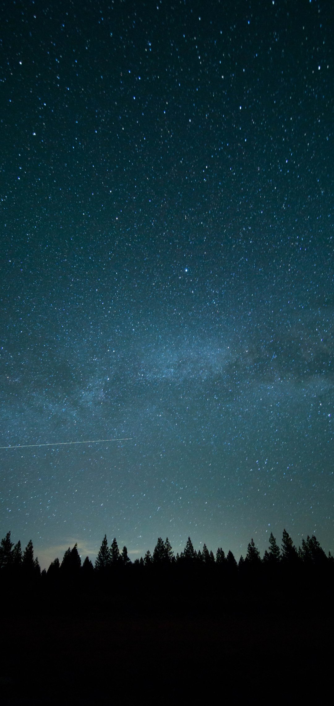 Обои: звездное небо, лес - 1080x2280